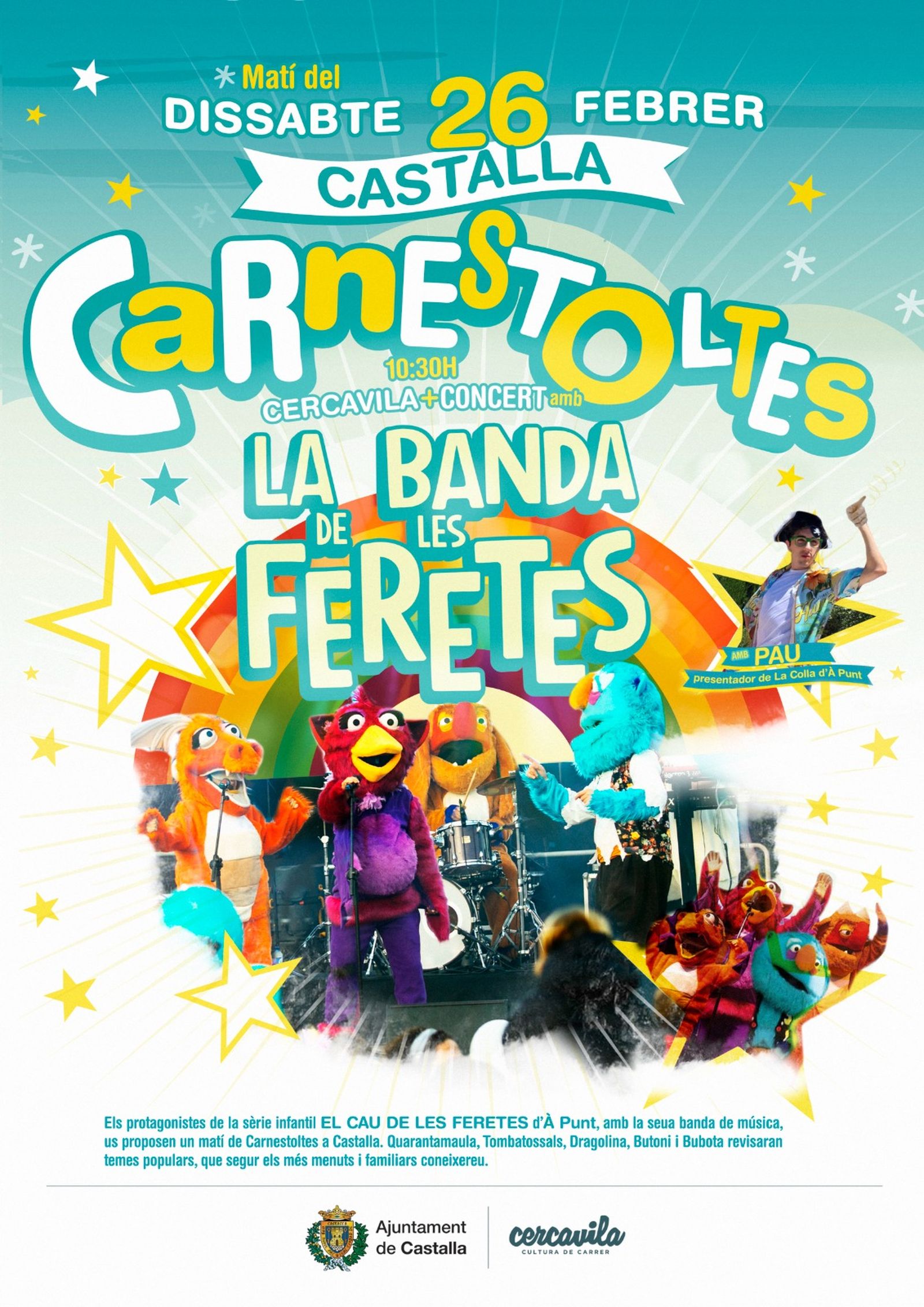 A les 10:30 h, començarà el concert de Quarantamaula, Butoni, Dragolina, Tombatossals i Bubota al parc municipal de Castalla, on grans i menuts podran ballar i cantar els seus èxits d'El Cau de Les Feretes.